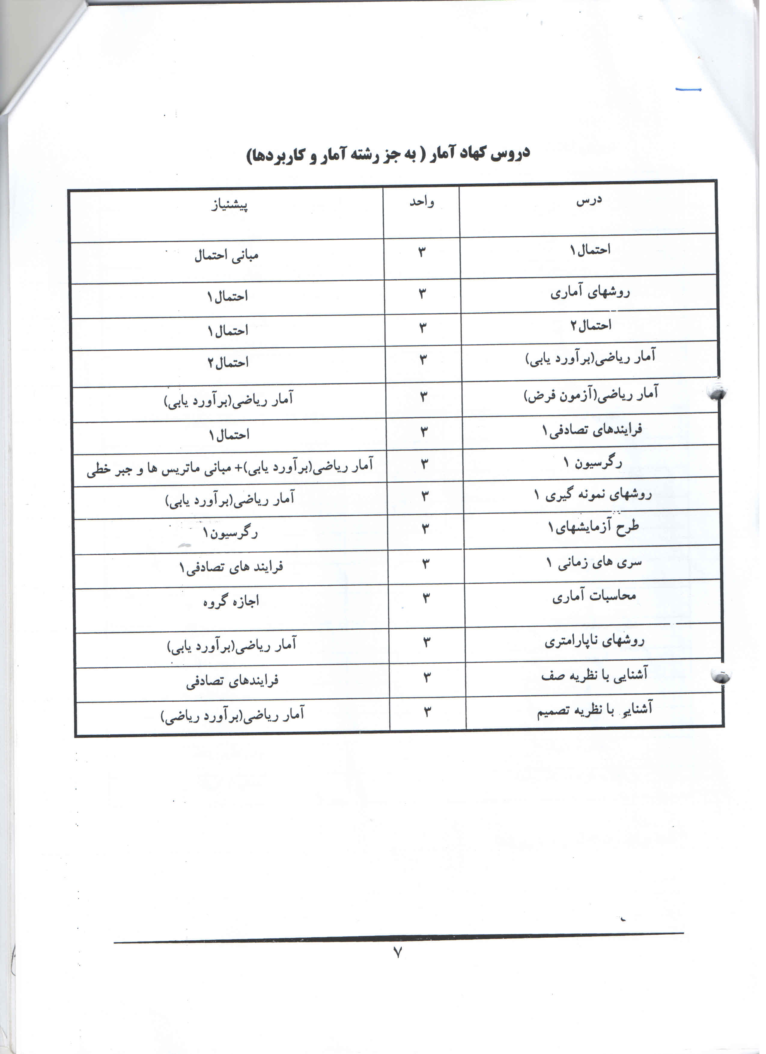 لیست دروس آمار و برنامه هشت ترمی رشته آمار
