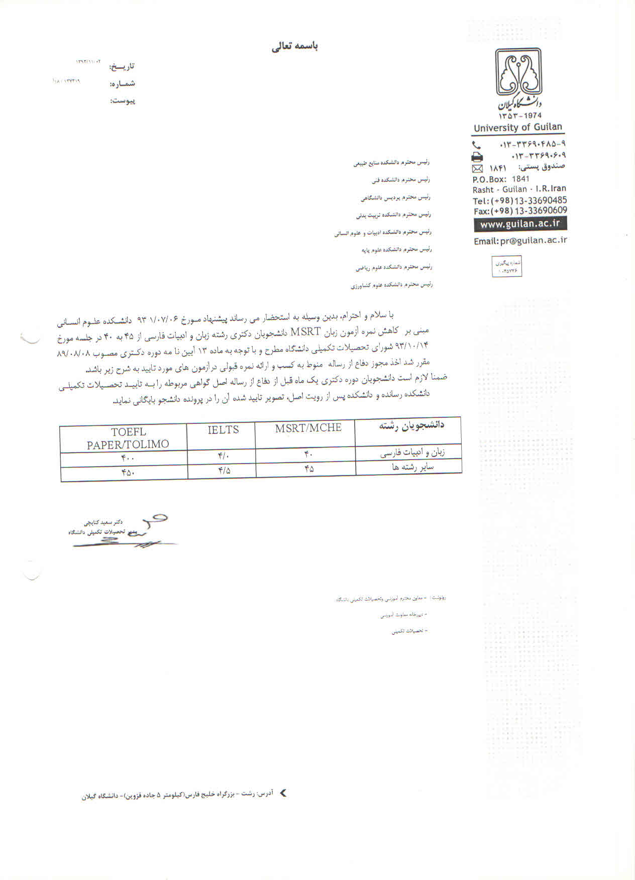 تعهدنامه اصالت پایان نامه- صورتجلسه دفاع از رساله دکتری- صورتجلسه لاتین دفاع از رساله دکتری- اصلاح عنوان رساله- برگ ارزشیابی رساله - برگ کنترل و تحویل رساله دکتری- چک لیست دفاعیه- صورتجلسه پرداخت حق الزحمه اساتید ممتحن مدعو- ضوابط تدوین رسالة دکتری و نمونه فرمها - فرم 16- فرم ثبت و توصیف پایان نامه- فرم درخواست صدور مجوز دفاع- فرم دعوت از داور مدعو- فرم دعوت از هیات داوران- فرم مجوز دفاع- گزارش ناظر منتخب شورای تحصیلات تکمیلی- الگوی فرستادن نسخه الکترونیکی رساله