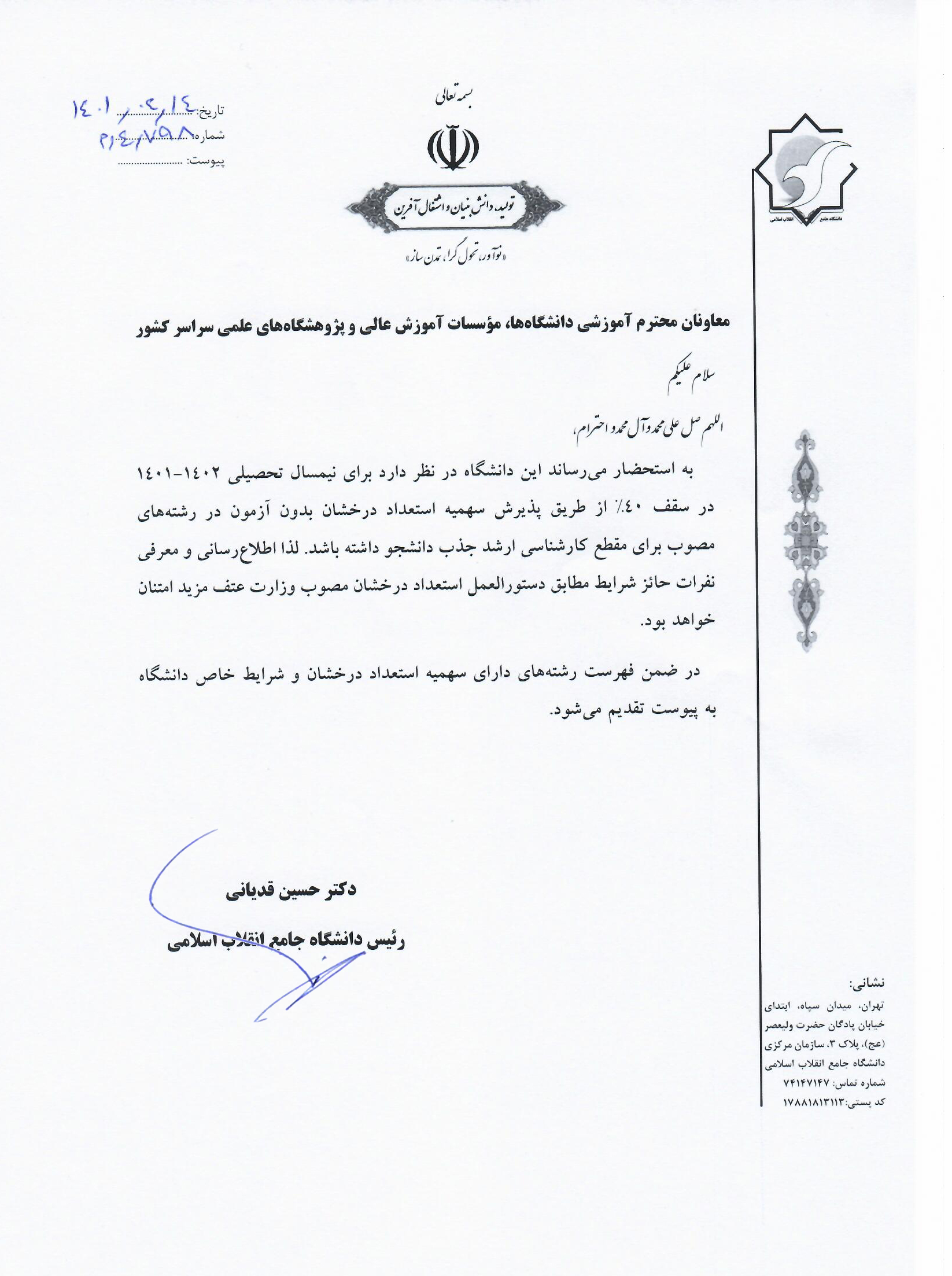 دانشگاه جامع انقلاب اسلامی ( نامه  ،  انتخاب رشته و شرایط   )